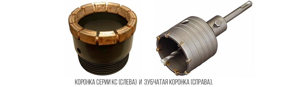 Выпускаются коронки двух основных типов:1.Серии КС . Такие коронки позволяют создавать отверстия и канавки в бетоне и иных аналогичных материалах. Поликристаллические алмазы, надежно закрепленные в матрице, формируют режущую кромку инструмента. Сократить агрессивные вибрационные воздействия позволяет безударный вариант исполнения.